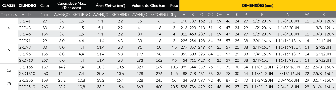 Cilindro Hidráulico de Dupla Ação para Múltiplas Aplicações - Série GRD