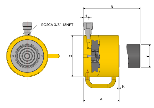 DescriçãoCilindro hidráulico utilizado para aplicações em espaços reduzidos ou com restrições. O retorno por mola garante que ocorra a retração da haste durante o processo e todos os modelos deste cilindro possuem um engate rápido do tipo fêmea.