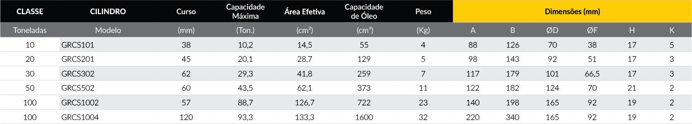 Cilindro Hidráulico de Simples Ação Compacto - Série GRCS