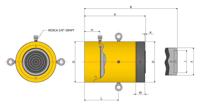 DescriçãoEste cilindro hidráulico foi desenvolvido e é recomendado para aplicações em serviços difíceis de elevação onde é necessário sustentar a carga mecanicamente por um longo período de tempo. Ele alia tanto a simples ação quanto a porca-trava a um sistema hidráulico blindado e necessita de peso sobre sua haste, para que ocorra o retorno da mesma, uma vez que não utiliza nenhuma mola de retorno.