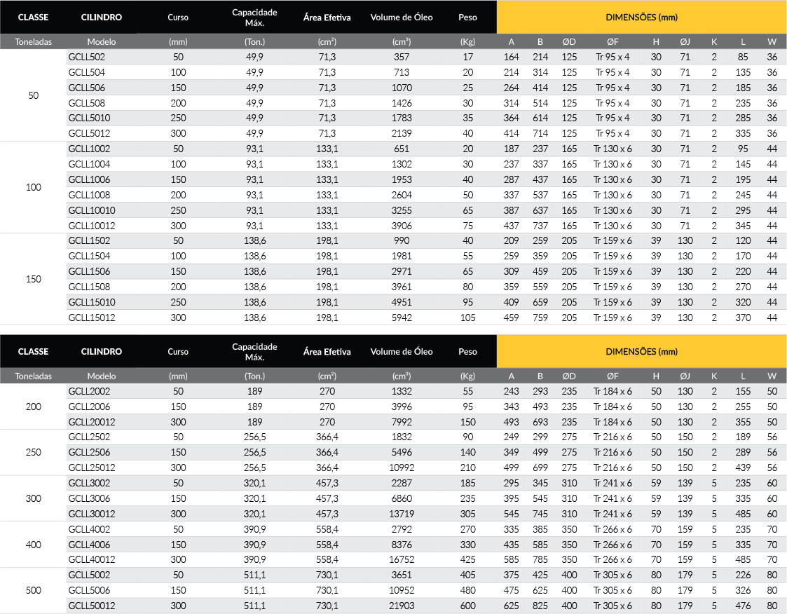 Cilindro Hidráulico de Simples Ação de Alta Tonelagem com Porca Trava - Série GCLL