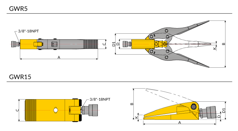 Todos os modelos tem mola de retorno para fechar as garras. Acompanha conexão de engate rápido tipo fêmea de 3/8” NPT.